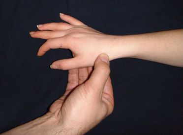 During physical examination, pain and loss of power whilst pinching or gripping, swelling and/or tenderness at the base of the thumb(picture 1), limitations in joint movements are noticed. Patient and doctor may feel friction if the thumb is tried to move in different directions when proksimal part is keeping stabil.