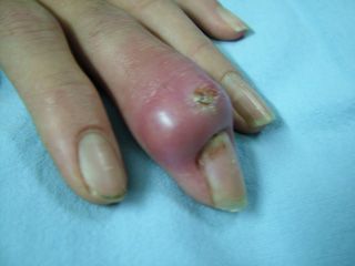 Panaris (nail side infection), paronychia (inflammation of the nail root) and felon (inflammation of the pulp-finger touch surface) are the most common soft tissue infections of the fingers and hand.(Figure 1.2)