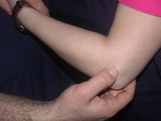 The outer part of the elbow that is called lateral epicondyl becomes prone and sensitive to touch; pain is the most common complaint (Fig. 1). Pain increases especially while the wrist is bent for grasping rough objects. The patient feels pain in the elbow while raising a teapot etc.